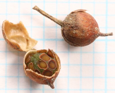 | ・種子は長さ0.7〜1mmほどの円錐状。球形の胎座の窪みにはめ込まれている。 |