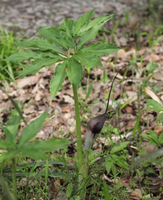 数あるテンナンショウ属の中、本種は花序の先の付属体を見ればすぐに解ります。