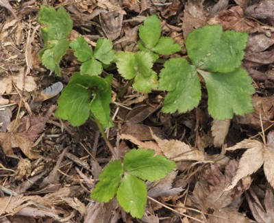 ・葉は3出複葉。小葉は卵形で先はとがり、ふちに重鋸歯がある。