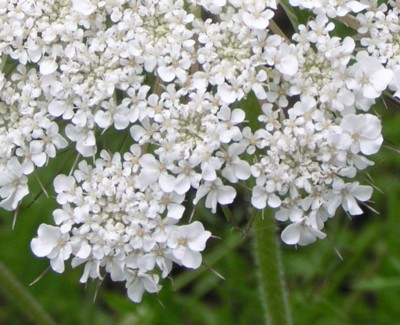 野菜のニンジンが逃げ出して野生化したものと言われるが、根は直径約1pと肥大しないし、赤くもならないらしい・・・はて