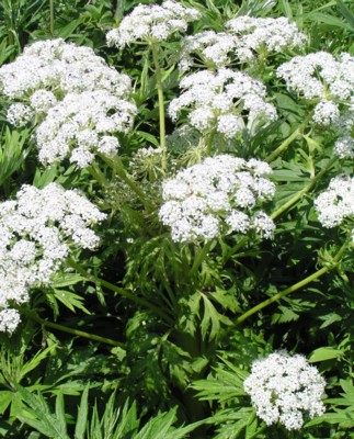 ・茎や枝先に複散形花序をつけ、白色の小さな花を多数つける。