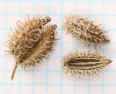 ・果実は分果。長さ2.5〜3.5mmの卵状長楕円形でカギ状に曲がった刺毛が密生する。