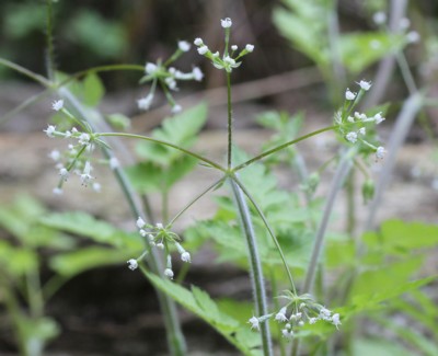 | ・名は、葉がニンジンの葉に似て、藪に生えることから。別名「ナガジラミ」は、果実が細長く、「ヤブジラミ」のように棘があることから。 |