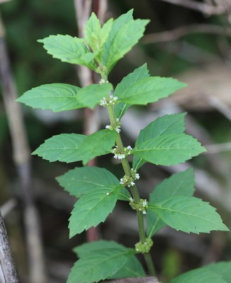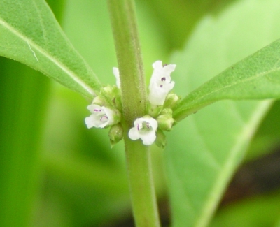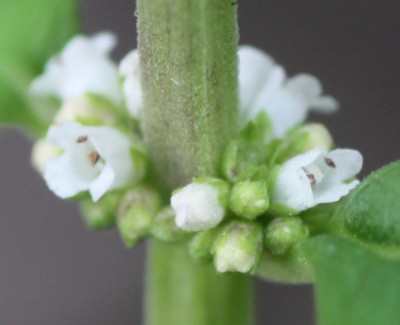 ・葉腋に唇形の花を数個ずつ密につける。