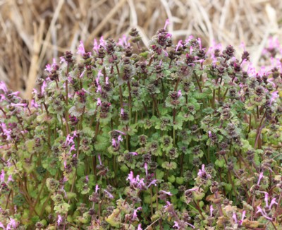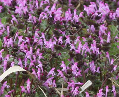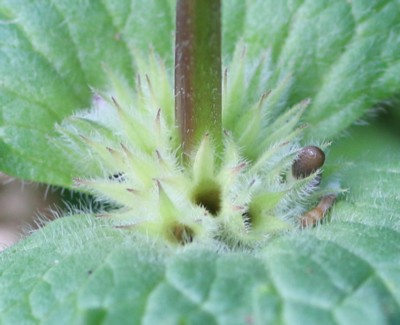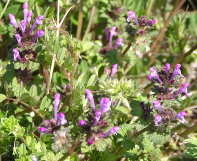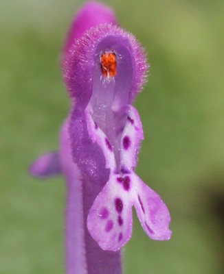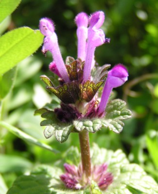 ・上部の葉腋に長さ約2cmの紅紫色の花をつける。