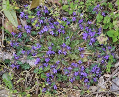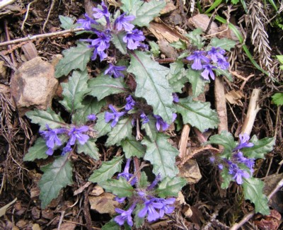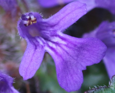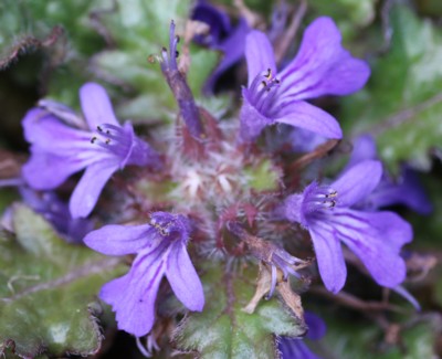 ・葉腋に長さ約1cm、濃紫色で唇形の花をつける。