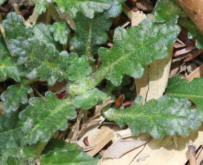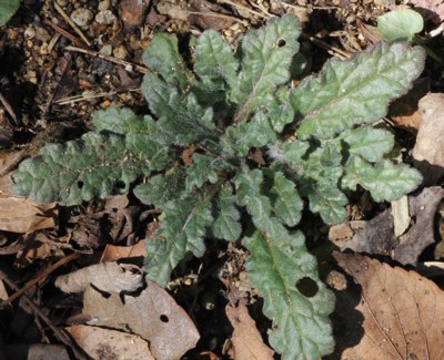 ・根生葉はロゼット状で、長さ4〜6cm、幅1〜2cmの倒披針形で粗い鋸歯がある。