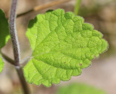 ・葉は対生。長さ、幅ともに1〜2.5pの広卵形で縁には鈍い鋸歯がある。