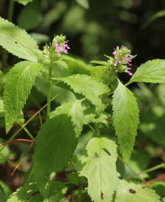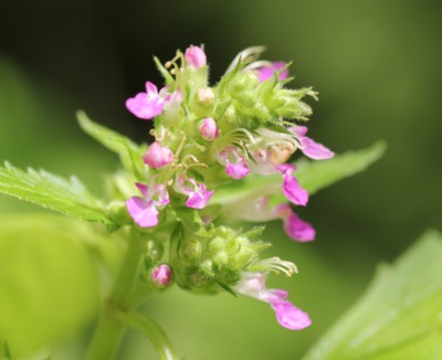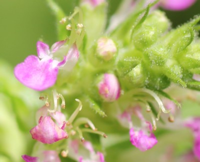 | ・茎の上部に長さ3〜5cmの花序を出し、淡紅色で唇形の花を密につける。 |