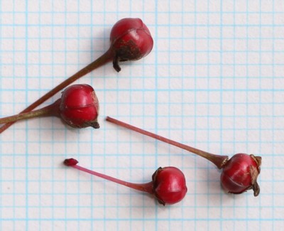 | ・果実は刮ハ。刮ハは直径3〜4mm、熟すと3裂して種子を飛ばす。 |