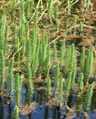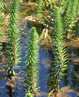 ・葉は長さ1cm前後の線形〜披針形で、6〜12個が輪生する。水中にある葉は長い。