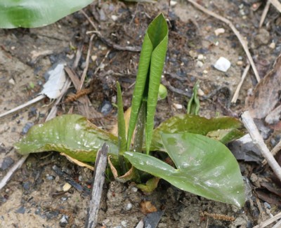 ・葉は水中葉と水上葉があり、水中葉は細長く膜質。水上葉は長さ20〜30cm、幅7〜12cmの長卵形で基部はやじり形。