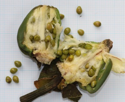 | ・果実は液果。緑色で長さ3〜6cmのつぼ形。中に多数の種子がある。 |