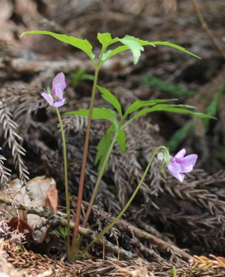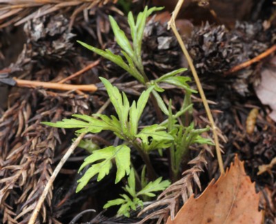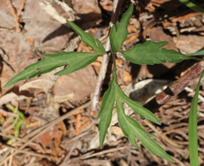 ・葉は3全裂。側葉はさらに2裂して5小葉に見えるものもある。