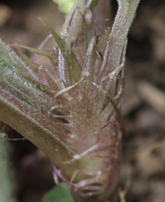 ・花は直径1.5〜2cmで濃紫色〜紫紅色。