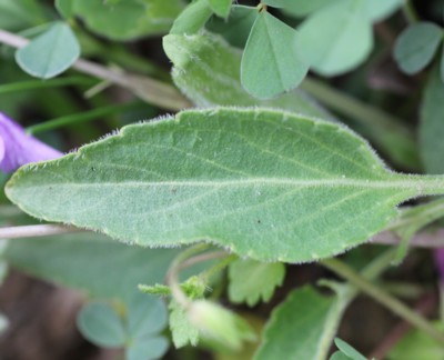 ・葉は長さ3〜8cmの長楕円状または三角状披針形。全体に微毛が多い。