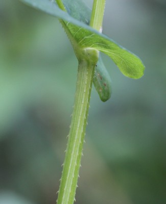 | ・葉は互生し、長さ5〜10pの卵状披針形〜長披針形。基部は矢じり形で茎を抱くように張り出す。 |
