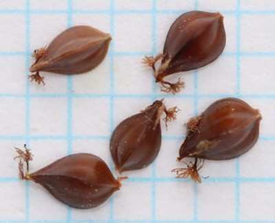 | ・痩果は光沢のある褐色〜赤褐色。3稜形で長さ2〜2.5mm。 |