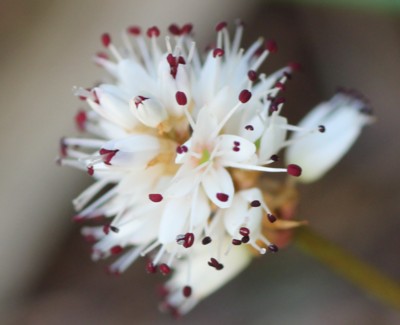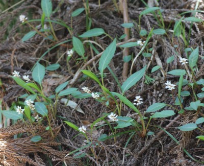 ・花茎は根生葉とは別に直立し、先端に長さ2〜4cmの花穂を出し、白色の花をつける。
