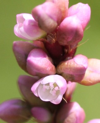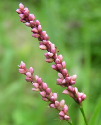 ・花序は長さ1〜5cmの穂状で、紅色の小さな花を多数つける。花被は長さ1.5〜2mmで5裂する。