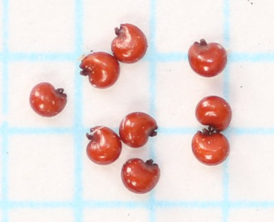 | ・種子は光沢のある褐色で長さ0.4〜0.5mmの腎円形。 |