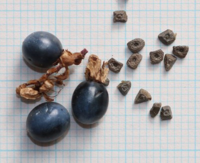 ・果実は液果。直径約5mmの球形で、青紫色に熟す。