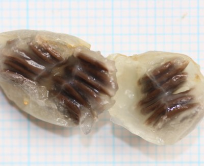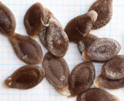 | ・種子は20個ほど。楕円形で平たく、両面に楕円形のくぼみがある。 |