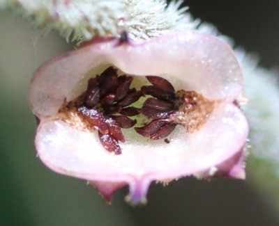 | ・果実は刮ハ。刮ハは上向きにつき、熟すと裂開し多数の種子を見せる。 |