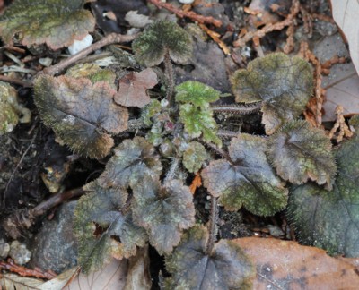 ・葉は根生し、長さ4〜8p、幅3〜5pの広卵形。