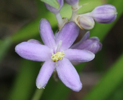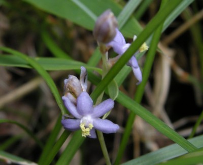 ・高さ10〜15cmの花茎を出し、淡紫色の花をまばらにつける。種子は直径4〜6mmで黒く熟す。
