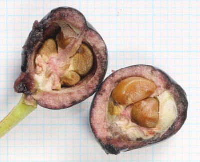 | ・果実は液果。直径1cmほどの球形で黒く熟す。 |