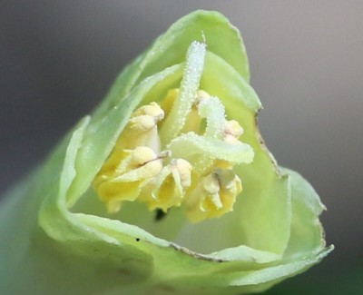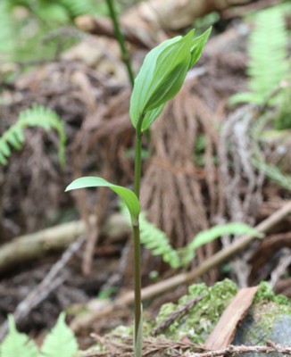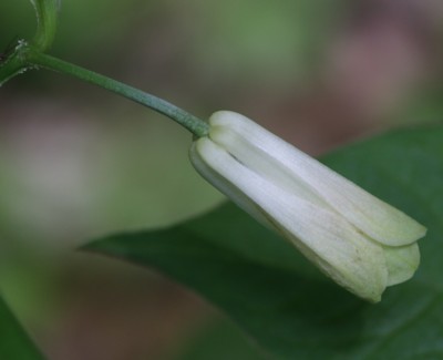 ・枝先に淡緑白色の花を1〜2個下向きにつける。花披片は6個、長さ2.5〜3cmで筒状にあつまる。