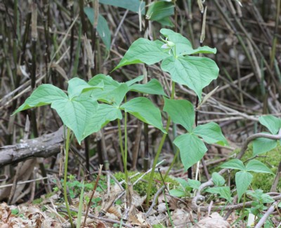 ・葉は長さ10〜18cmの菱状広卵形で茎頂に3個輪生する。