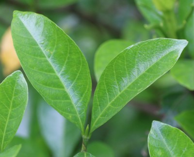 | ・先はとがり、基部は広いくさび形。ふちは全縁。革質で両面とも無毛。 |
