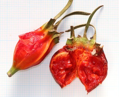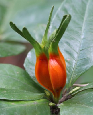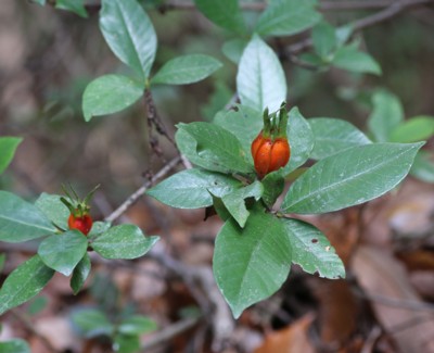 | ・果実は肉質の液果。長さ2〜3cmの楕円形で、5〜7稜があり、先端に萼片が残る。11〜12月に橙色に熟す。 |