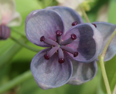 | ・果実は長さ5〜10cmの楕円形で、9〜10月に紫色に熟して縦に裂ける。 |