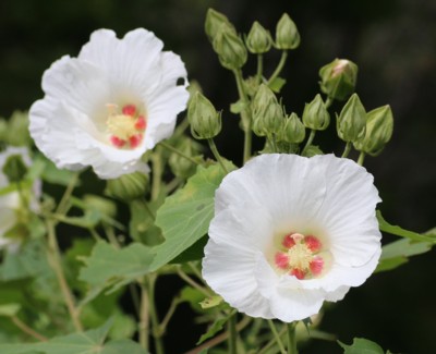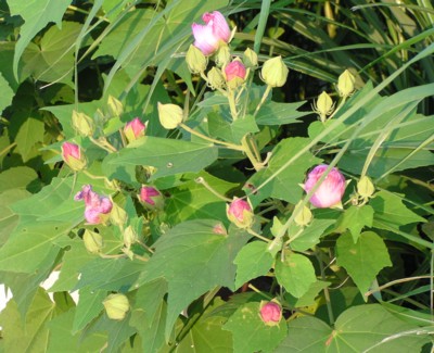 | ・枝の上部の葉腋に淡紅色または白色の花をつける。 |