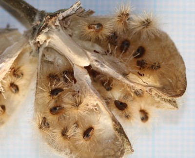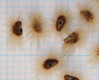 | ・種子は長さ約2mmの腎臓形で、淡褐色の粗い長毛がある。 |