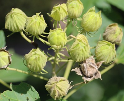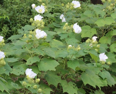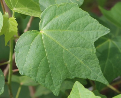 ・葉は互生。長さ、幅とも10〜20cmで五角形状、ふつう上部は浅く3〜7裂する。