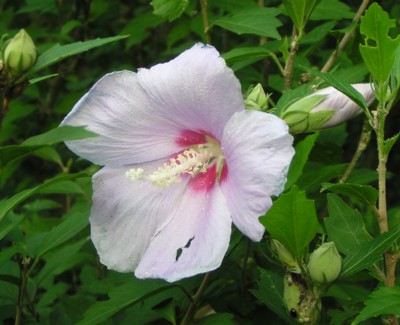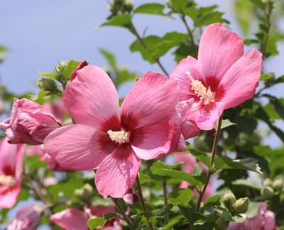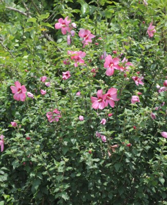 | ・花弁の色は紅紫色、白色、桃色などさまざまあり、花弁は5個だが八重咲きの品種もある。 |