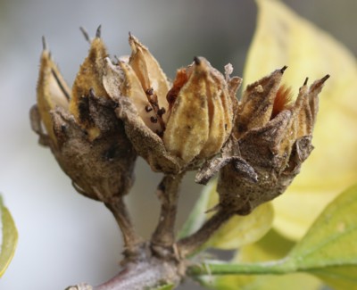 | ・果実は刮ハで、長さ1.5〜2cmの卵形。10月頃に熟し5裂する。 |