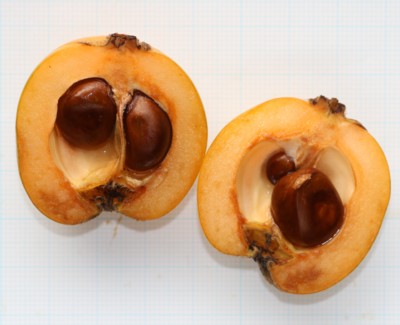 | ・果実はナシ状果。直径3〜4cmで、5〜6月頃に黄橙色に熟する。 |