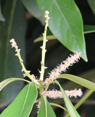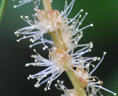| ・雄花序は長さ5〜9cm、新枝の葉のわきから数個が斜上する。 |