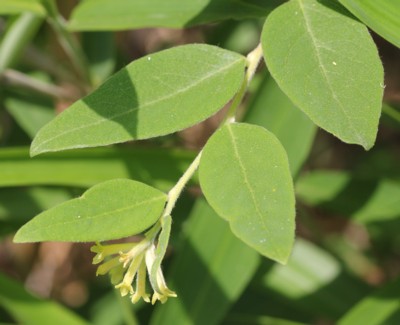 ・葉は互生。長さ1.5〜8cm、幅1〜4cmの卵形で、両面とも伏した絹毛がある。