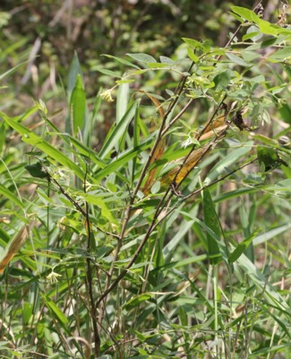 ・枝先に頭状花序をだし、淡黄色の花を7〜20個つける。萼筒は長さ約8mm、先は4裂する。