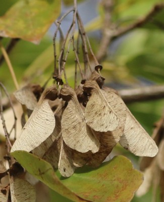・果実は翼果。分果は長さ約2cmで、翼はあまり開かない。10月頃に熟す。