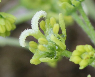 | ・花弁は5個。雄しべは8個あり、雄花では花弁より長く、両性花では花弁より短い。両性花の花柱は2裂する。 |