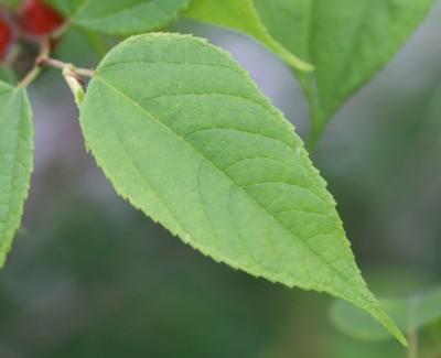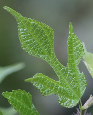 ・葉は互生。長さ4〜10cm、幅2〜5cmのゆがんだ卵形で、2〜3裂するものまである。