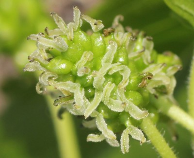 | ・雌花序は長さ5〜10mmで雌花が多数つく。雄花序は長さ4〜7cmの円筒形で雄花が多数つく。 |