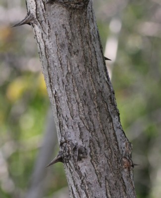 | ・樹皮は淡褐色で縦の割れ目があり、枝には托葉が変化した棘がある。 |